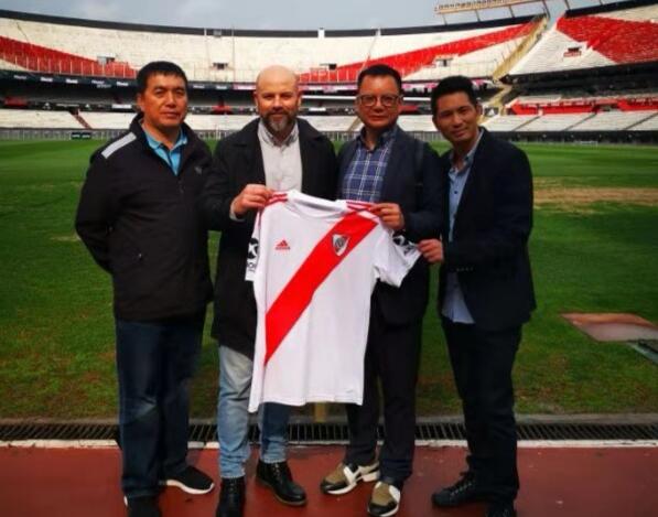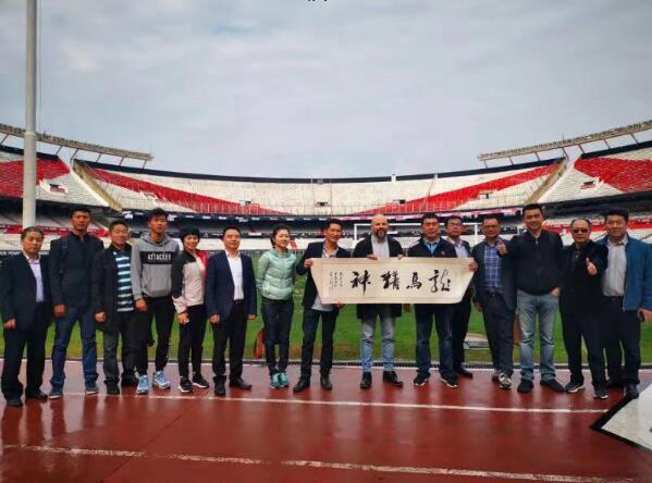 由阿根廷河床足球俱乐部阿德里安·巴雷拉(河床俱乐部国际关系部主管、河床俱乐部青训部主管、布宜诺斯艾利斯文化体育部副部长、布宜诺斯艾利斯市议员奥古斯丁·福基耶里的总顾问)先生的陪同下,代表团成员参观了俱乐部比赛场馆并座谈交流。