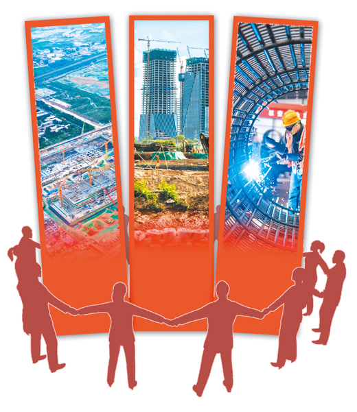 图右:在海南自贸港江东新区,绕城高速二期项目机场互通正在加快施工。黄晓慧 王程龙摄