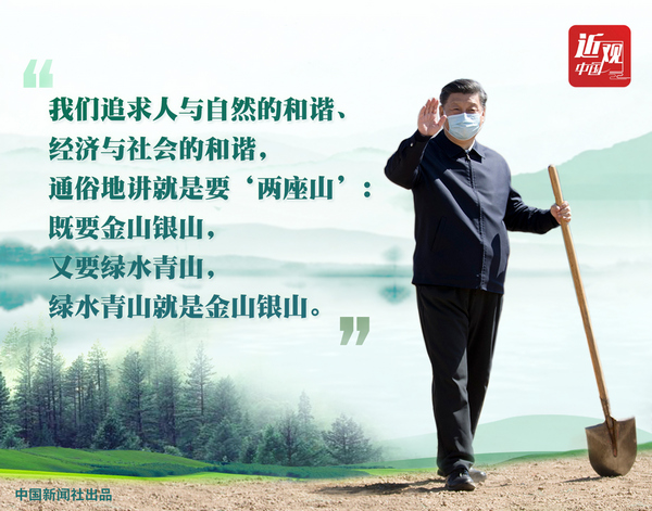 “我们追求人与自然的和谐、经济与社会的和谐,通俗地讲就是要‘两座山’:既要金山银山,又要绿水青山,绿水青山就是金山银山。”8年后,作为中国最高领导人,习近平在哈萨克斯坦纳扎尔巴耶夫大学发表演讲后回答学生提问时如此诠释“两山论”。