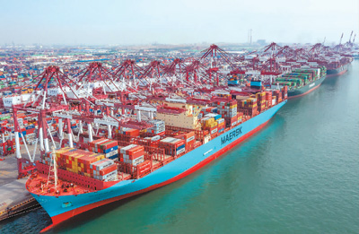 自贸区的设立,为山东开放发展注入了新动力。位于山东自贸区青岛片区内的青岛港,充分利用区内各项优惠政策,实现快速发展。图为今年7月2日,一艘货轮正在装卸货物。 张进刚摄(人民视觉)