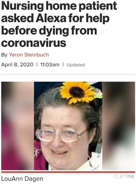 Dagen是Cedar Springs 养老院的35个老人之一,还有5个看护人员,全部感染了冠状病毒,处于隔离期,接受远程监护。她最终死于病毒引发的糖尿病、高血压综合症。