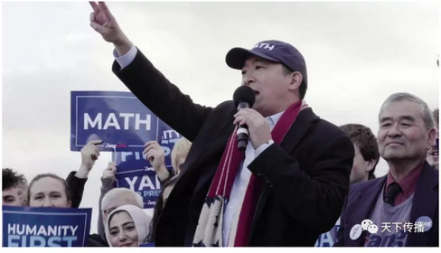 杨安泽这次竞选时,走得很远,就是扬长补短。竞选集会时,本人和支持者都戴着Math(数学)的标志。同时他和NBA的球星合拍了打篮球的短视频,控球、过人、上篮、远投,非常精彩,加分不少。