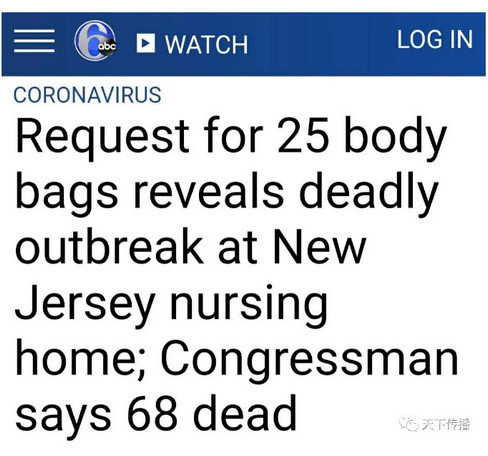 今天最难过的事,新泽西州安多弗(Andover)的一家养老院,紧急需要25个装尸袋。人命关天,警方前往查看,在那里一下发现17具尸体。