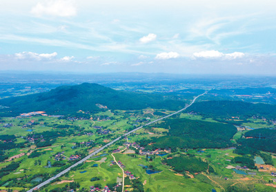 在井冈山脚下的江西省吉安市泰和县马市镇,大广高速公路穿镇而过,便捷的交通运输网络助力井冈山革命老区脱贫攻坚。邓和平 摄(影像中国)