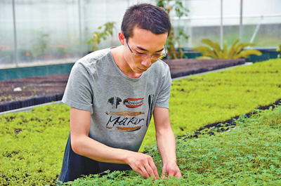 温度调节、墒情测试、长势记录……29岁的冯智鹏正加班加点,观测一批自主培育的树苗。一个个纸杯大的穴盘内,卫茅、冷杉、四川丁香的幼苗正茁壮成长。“这是我们的育苗基地,近百万株未来的参天大树在这里迈出成长的第一步。”冯智鹏自豪地介绍。