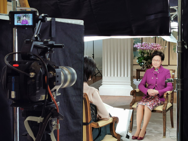 香港特首林鄭月娥接受專訪現場