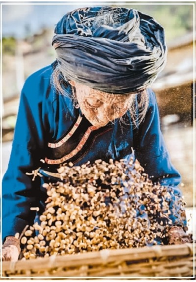 2020年2月,潞江镇赧丛咖啡种植专业合作社社员在手工筛捡咖啡。