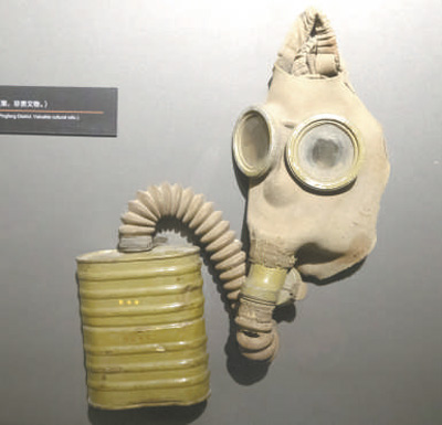 陈列馆内陈列的日军防毒面具。 张 涛摄(新华社发)