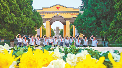 9月3日,小学生们来到河北邯郸晋冀鲁豫烈士陵园向左权将军墓敬礼,缅怀先烈。 本报记者 史自强摄