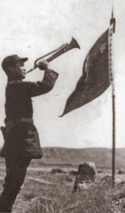这是美国新闻记者埃德加·斯诺1936年8月在豫旺堡(今宁夏同心县预旺镇)拍摄的名为抗战之声的经典照片(资料照片)。 新华社发
