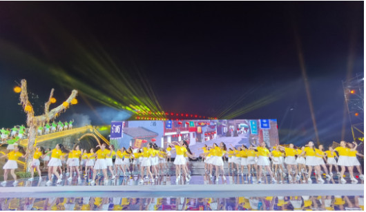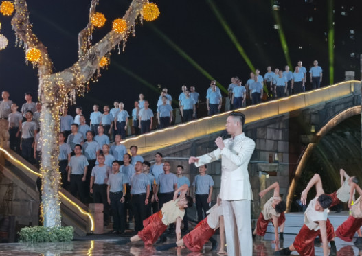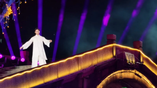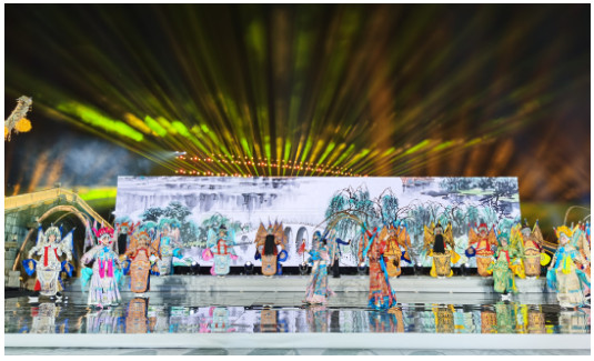 通过与舞台LED大屏实时联动,时而为彩蝶,时而为灯笼,最终幻化为奔流不息的运河汇入实景之中,为现场观众带来震撼的视觉体验。