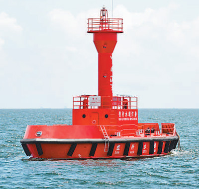 采用北斗航标遥测遥控装置的一艘大型灯船投放在珠江口担杆水道。 新华社记者 田建川摄