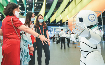 2020年中国国际服务贸易交易会正在北京举行。本届服贸会突出展示全球服务贸易最新成果和5G、人工智能、区块链等前沿技术在服务贸易领域的智慧应用,充分反映中国和世界服务贸易发展新成就,处处充满“科技范儿”。