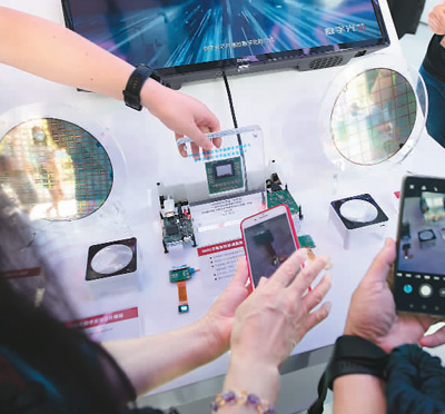 人们在服贸会国别和省区市专区参观4800万像素硅基液晶数字光场芯片。这个我国自主研发的工业数字光场芯片可广泛应用于投影仪、虚拟现实等领域。 新华社记者 孟 涛摄