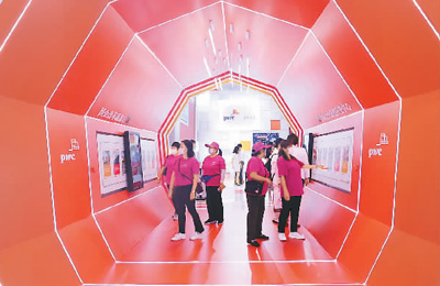 9月7日,服贸会上众多新技术新成果亮相。图为观众在服贸会展区参观。 陈晓根摄(人民视觉)