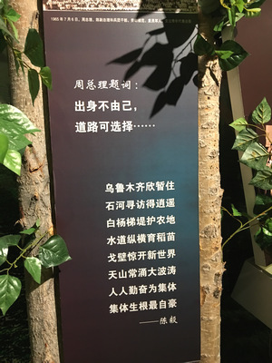 显然我是用倒叙的方式来具体讲述《新疆兵团第八师石河子市故事》,之所以把“新疆兵团军垦博物馆”列为故事之首篇讲述,在笔者看来,主要在于兵团人、军垦人、戍边人——我们伟大祖国的缔造者、捍卫者、建设者、“中国梦”及“一带一路”践行者的可歌可泣的英雄事迹浓缩在“新疆兵团军垦博物馆”之中——在我们观瞻这些展示陈列的同时,仿佛自己置身于那些为民族的自由解放、人间正气正义之真理追索而绝不顾惜自己宝贵生命的英雄英烈们的身旁、置身于那战火纷飞的年代;仿佛自己置身于那激情燃烧的岁月,把有限的生命投入到无限的为边疆建设、为祖国建设贡献青春和力量的时代大潮中——那是极其淳朴、纯洁自豪而幸福的年代——“边疆的泉水清又纯”、“边疆的歌儿暖人心”、“一条心保边疆,锦绣河山万年春”……