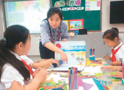 河南郑州经开区举行的学生美术观摩课堂。 (资料图片)