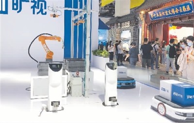 物流机器人来回穿梭,自动完成包括分拣、称重、运送等在内的一系列工作,北京旷视科技有限公司的展台吸引了许多与会者驻足,机器人的高效操作令人印象深刻。