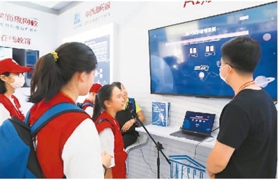 学生正在体验好未来推出的语言表达能力评测系统。 这款中英文口语表达评测系统是好未来此次在服贸会上亮相的技术产品之一。 (受访者供图)