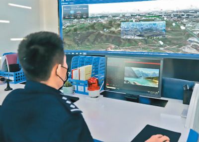 河北省张家口市经开区森林公安局的民警正在运用智慧森林防火和生态保护系统进行森林防火监控。 毕瑞翔摄(人民图片)