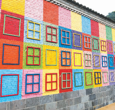 记者发现,类似的艺术装置正四散于这个游客口中的“诗意傣寨”:创意字体写成的诗句彩灯、仿村中孩童绘就的巨幅壁画、废弃砖瓦制作的墙面装饰……殊不知,在去年以前,帕连还一直是一座默默无闻的边陲村寨。