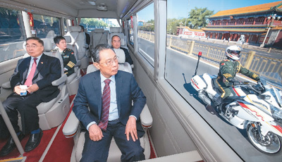 九月八日,全国抗击新冠肺炎疫情表彰大会在北京人民大会堂隆重举行。图为国家勋章和国家荣誉称号获得者集体乘坐礼宾车从住地出发,由国宾护卫队护卫前往人民大会堂。 新华社记者 刘 彬摄