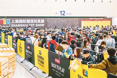 2019年上海国际潮流玩具展上排队等候入场的人群。 泡泡玛特供图