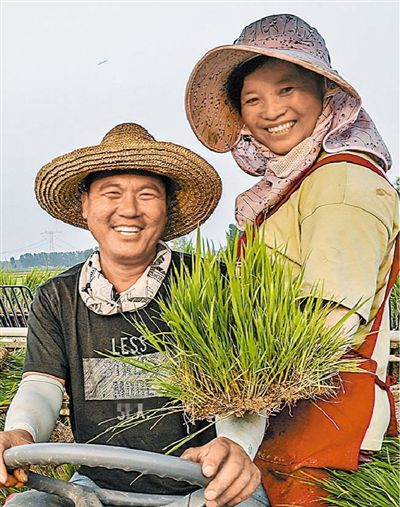 初秋时节,河南省新乡市原阳县农民在稻田里引黄河水灌溉插秧。曹成岭摄(人民视觉)