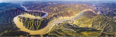 山西省忻州市偏关县老牛湾山顶全景俯瞰。李鹏程摄(人民视觉)