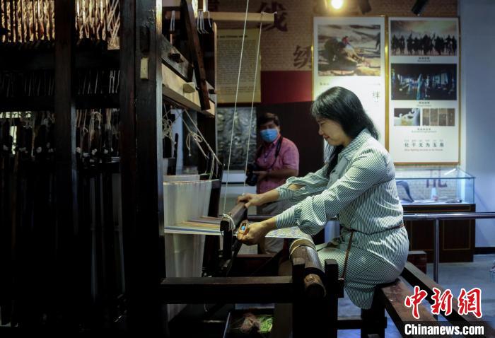 澳大利亚澳华电视传媒(ACTV)记者海英南充现场据中新网9月20日电 (祝欢单鹏)“以前觉得织布是一个很简单的过程,今天亲自操作过后才觉得织布没有那么容易,需要手、眼、脚的协调配合。”20日,在位于四川南充嘉陵区的中国绸都丝绸博物馆,埃及《中国周报》副社长朱新娥在仿古丝绸织机上体验了一把丝绸织造。