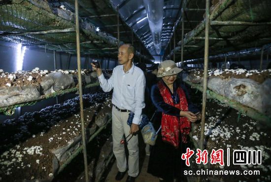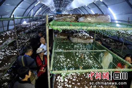 海外华文媒体代表在纯阳山村“智能菇房”参观。王磊 摄