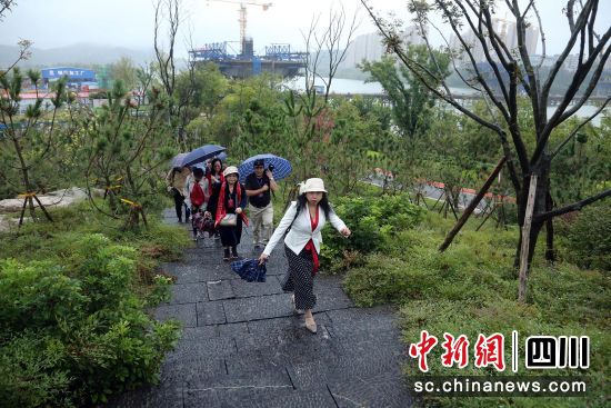 海外华文媒体代表在满福坝水城登高参观。王磊 摄