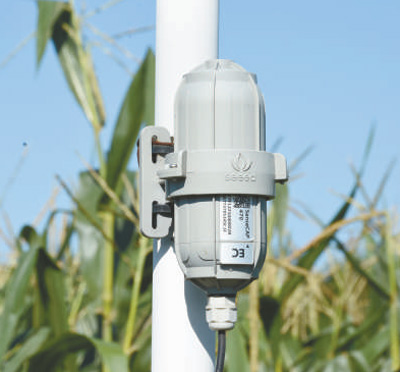 架设在河北定州市东留春乡北邵村玉米田中的物联网传感器。