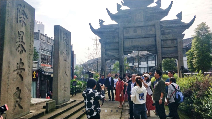 随着导游的介绍,一个个牌坊背后的故事如画卷般展开,从历史深处徐徐呈现在华文媒体代表眼前。