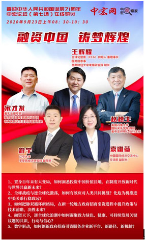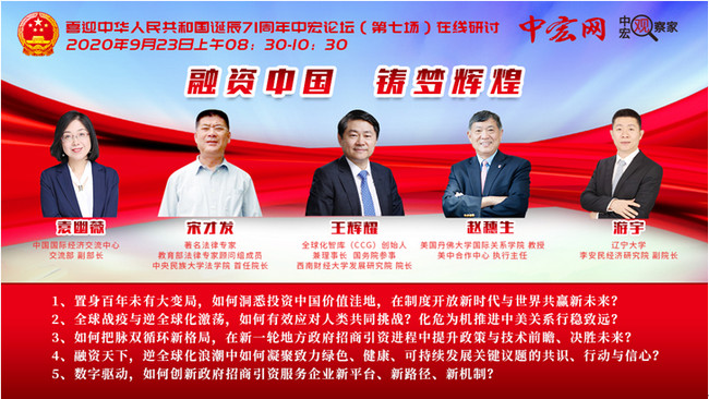 北京9月23日电 喜迎中华人民共和国诞辰71周年,聚焦“融资中国 铸梦辉煌”,中宏论坛(第七场)在线研讨会9月23日上午在京召开。