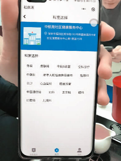 图为手机上的社康通APP。 本报记者 熊建摄