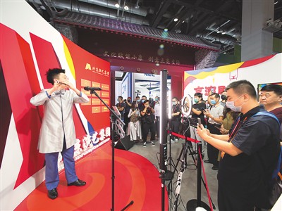 9月5日,在北京2020年中国国际服务贸易交易会现场,北京演艺集团正在进行现场云直播表演。 杜建坡摄(人民视觉)