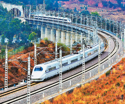 高铁行驶在昆楚大铁路上。 李茂颖 张伟明摄影报道
