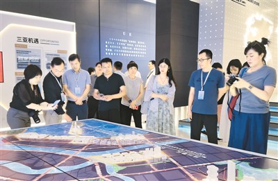海外华文媒体海南采风团一行在海南省三亚市中央商务区管理局参观。