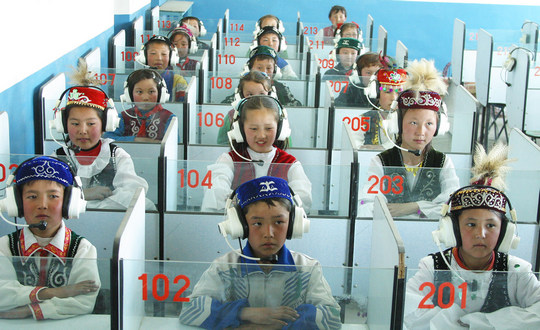 石河子市第三中学少数民族学生在上双语课(张德智摄)