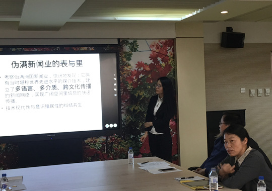 2017年12月9日下午,吉林省传播学会第三届代表大会——暨“东北文化的现代关照与反思”学术年会,研究生分会场讨论会成功在吉林大学东荣大厦10楼大创中心圆满召开。会议上半场由来自东北师范大学文学院新闻系的张恩普教授主持点评,会议期间有来自东北师范大学传媒科学学院的硕士研究生于博同学、吉林大学新闻与传播学院的硕士研究生刘馨童、孙红昶、孙睿鹏、袁谅等同学分别发言。