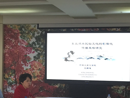 上半部分结束茶歇时间。于14:40开始了下半部分的研讨。下半部分由吉林大学严俊教授主持,有五位学者发表了演讲,分别为:吉林大学任传功教授、吉林大学施斌副教授、吉林农业大学人文学院新闻传播系李彬副教授、吉林艺术学院岳琳副教授、长春大学萨满文化研究中心郑德博士。