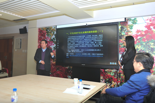 施斌教授演讲的主题为:发展传播学视阔下的东北文化与东北振兴。其中围绕发展传播学与东北文化和前景展开了讨论。李彬副教授演讲的主题为:新媒体赋权条件下的乡村文化传播机制研究。围绕着新媒体条件下的乡村文化传播展开了详细的论述。岳琳副教授演讲的主题为:长白山“贡品文化”传播探究。其中提到要重拾长白山贡品文化,并进行长白山“贡品文化”文创产品开发。郑德博士演讲的主题为:东北农村烧香祭祀的社会人类学考察。任传功教授演讲的主题为:论党的十九大关于文化发展指导思想与打破东北文化土粗俗的钥匙。分别阐述了十九大关于文化发展的指导思想、东北文化的土粗俗、以及打破土粗俗的钥匙。