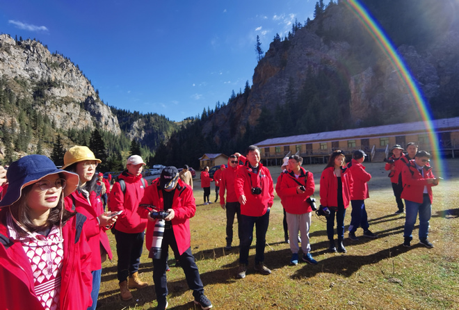 10月17日上午,中外媒体记者们在囊谦江源生态保护园区采访