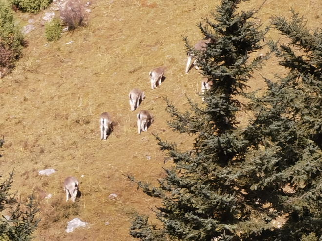 10月17日上午,中外媒体记者们在囊谦江源生态保护园区探访:与岩羊交友