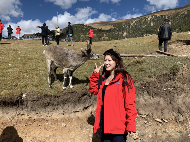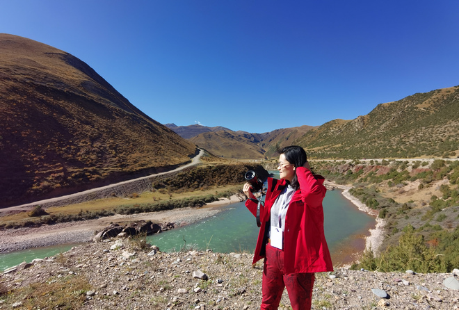 来自越南的美女记者在囊谦-杂多原生态风景区留影