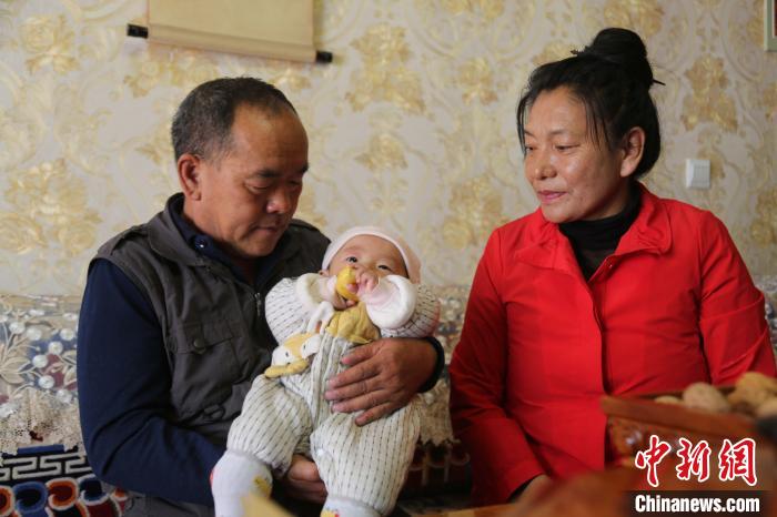 图为扎西曲珍(右)和张宝海照顾孙女。 张添福 摄