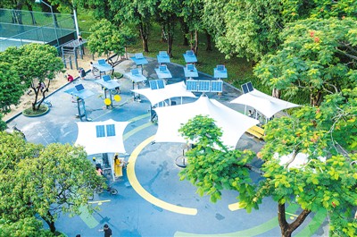 深圳核心区域的中心公园里,有一座占地面积约800平方米的“智能健身房”,不同区域满足不同功能的训练和测试。 新华社记者 毛思倩摄