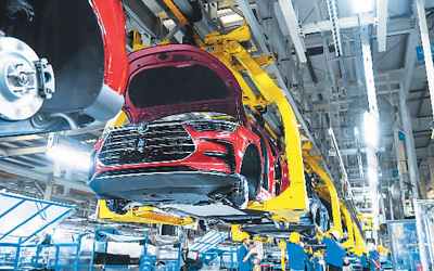 2020年9月23日,在深圳比亚迪总部,工人进行新能源汽车的组装。 新华社记者 毛思倩摄