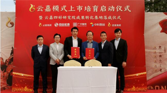 作为当天的另一重头戏,同云嘉一样隶属陆加壹集团的壹嘉资本,与中山证券有限责任公司、广东产业创新智库、深圳中科智创业金融投资集团有限公司进行战略合作签约,先期将辅助云嘉模式上市培育及云嘉四好研究院成果转化。